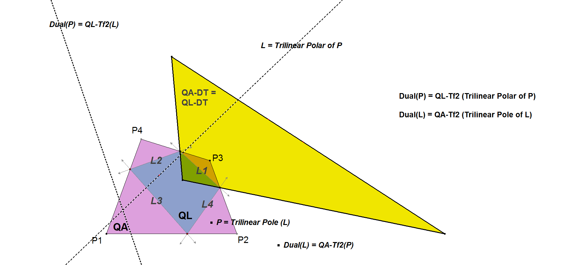 Note: QL-Tf11(P) is the dual of P and QA-Tf10(L) is the dual of L.